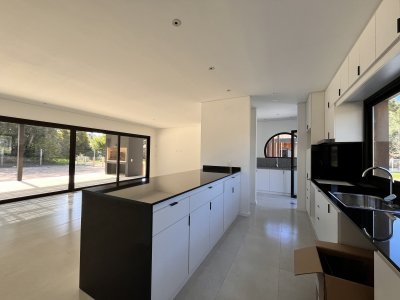 Hermosa casa a estrenar en La Barra, con una sólida construcción en una sola planta. El living, c ...